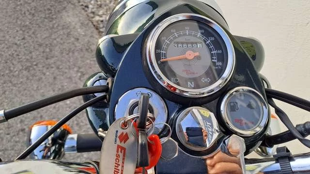 Die Bullet 500 Classic pur mit Langhubmotor und entsprechend Drehmoment mit TÖFF TÖFF{{{ }}} Erstinbetriebname 04.2017 (bei Hdl nur Tageszulassung){{{ }}} Gepäckträger chrom{{{ }}} Sturzbügel chrom{{{ }}} Handlinierte Decorstreifen{{{ }}} Top-CaseWir sind seit 25 Jahren Motorradhändler für SUZUKI und seit 23 Jahren Royal Enfield Hdl., und somit einer der Langjährigsten RE Hdl. mit Erfahrung in Deutschland.Versand Deutschlandweit mit unseren Partner Speditionen.Gerne nehmen wir Ihre Gebrauchte in Zahlung, und bieten Ihnen über unsere Suzuki Finance günstige Finanzierungen an.Bitte keine Anfragen wie: was ist Letzte Preis, oder was ist Preis für Export, bei uns bezahlen unsere Kunden vor Ort den selben Preis wie bei Export!Wir freuen uns über jede ernsthafte AnfrageAnfragen Besichtigungs oder Probefahrttermine unter 00491758363098